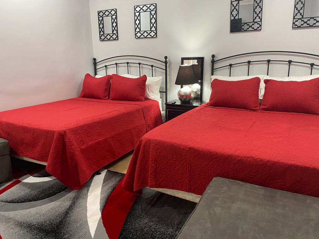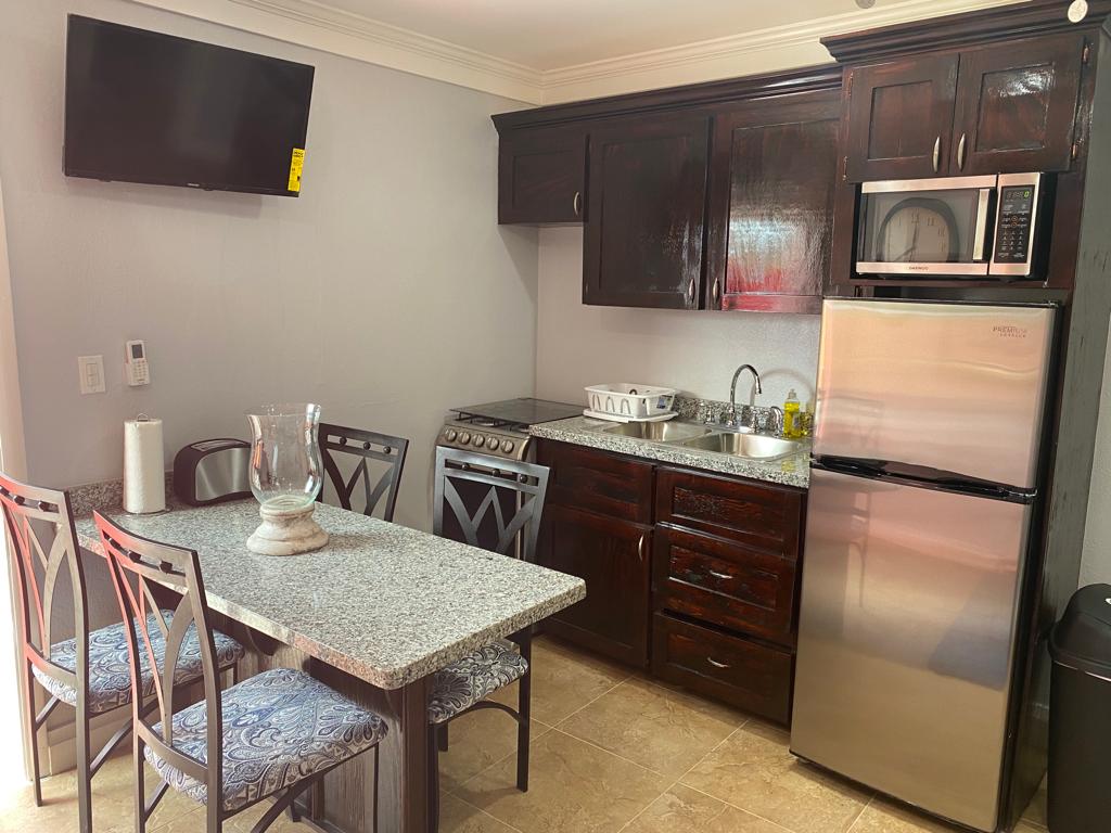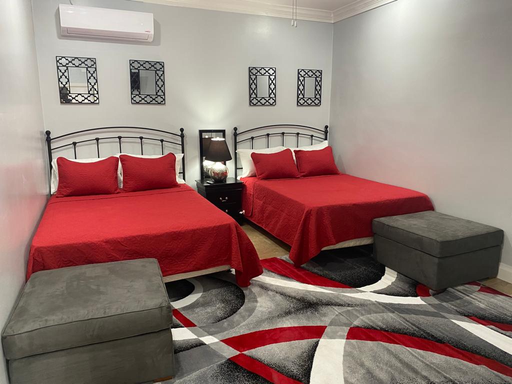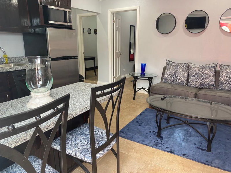 This newly established guesthouses provides comfort, style and affordability. It’s a 2 bedroom unit with 1 bath (stand up shower) with a tasteful decor for all guests to enjoy. With a spacious living and kitchen area, guest can relax in comfort at an affordable price. This unit can sleep up to 6 persons, perfect for families and that much needed get away. With mere steps to one of the pools on property guests get what they want and more!